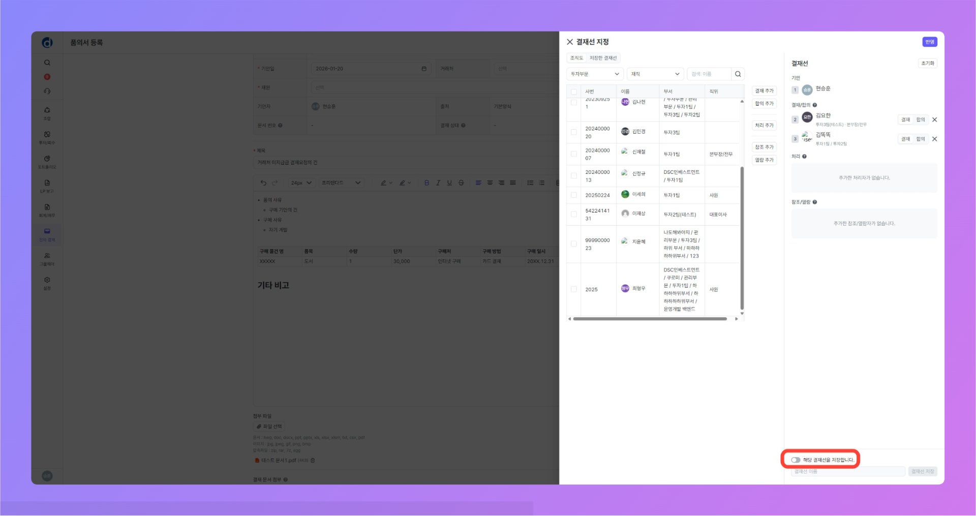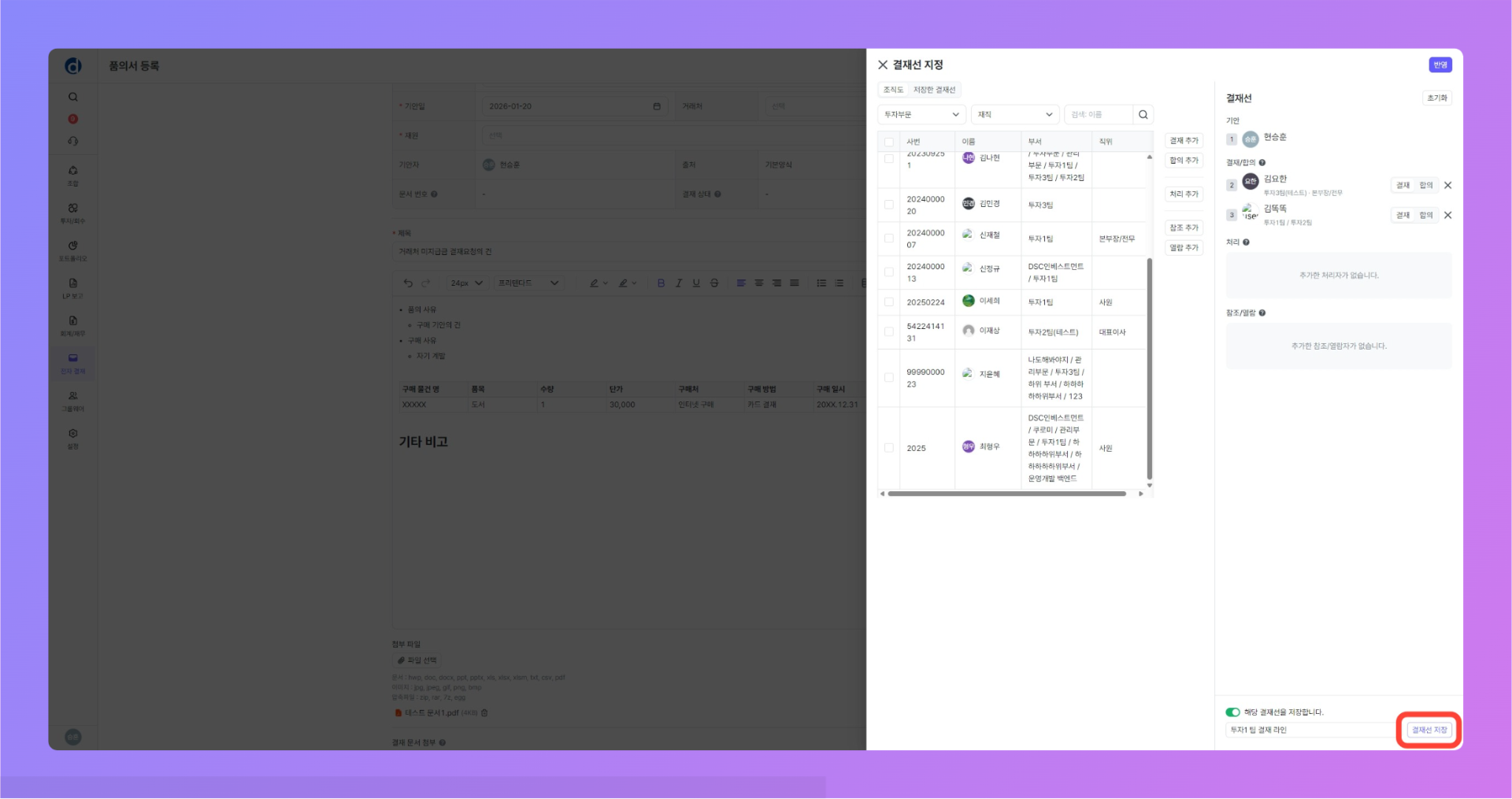 결재선 저장