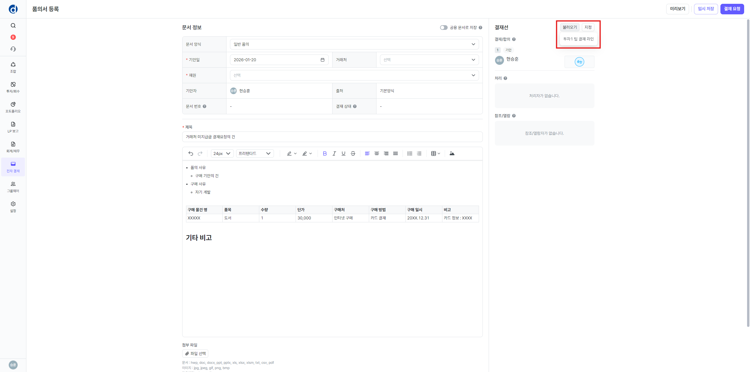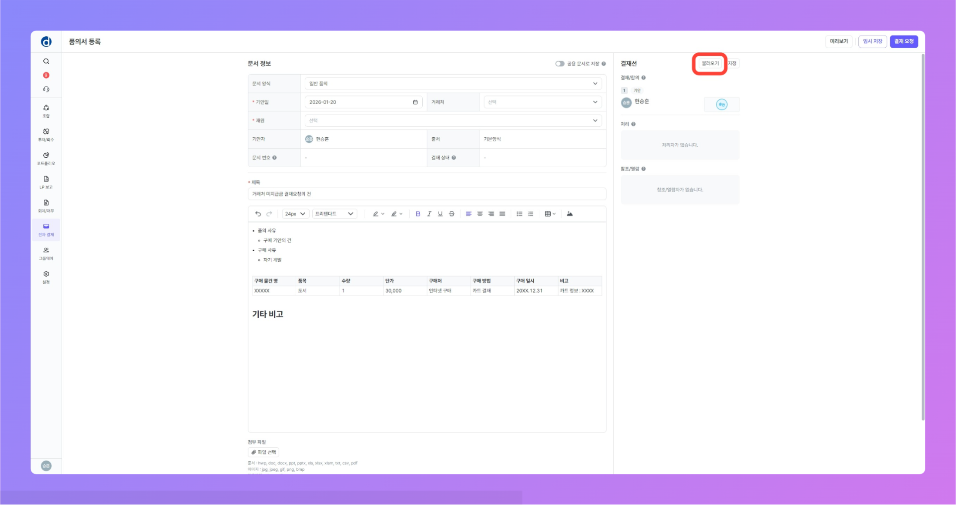 저장한 결재선 불러오기