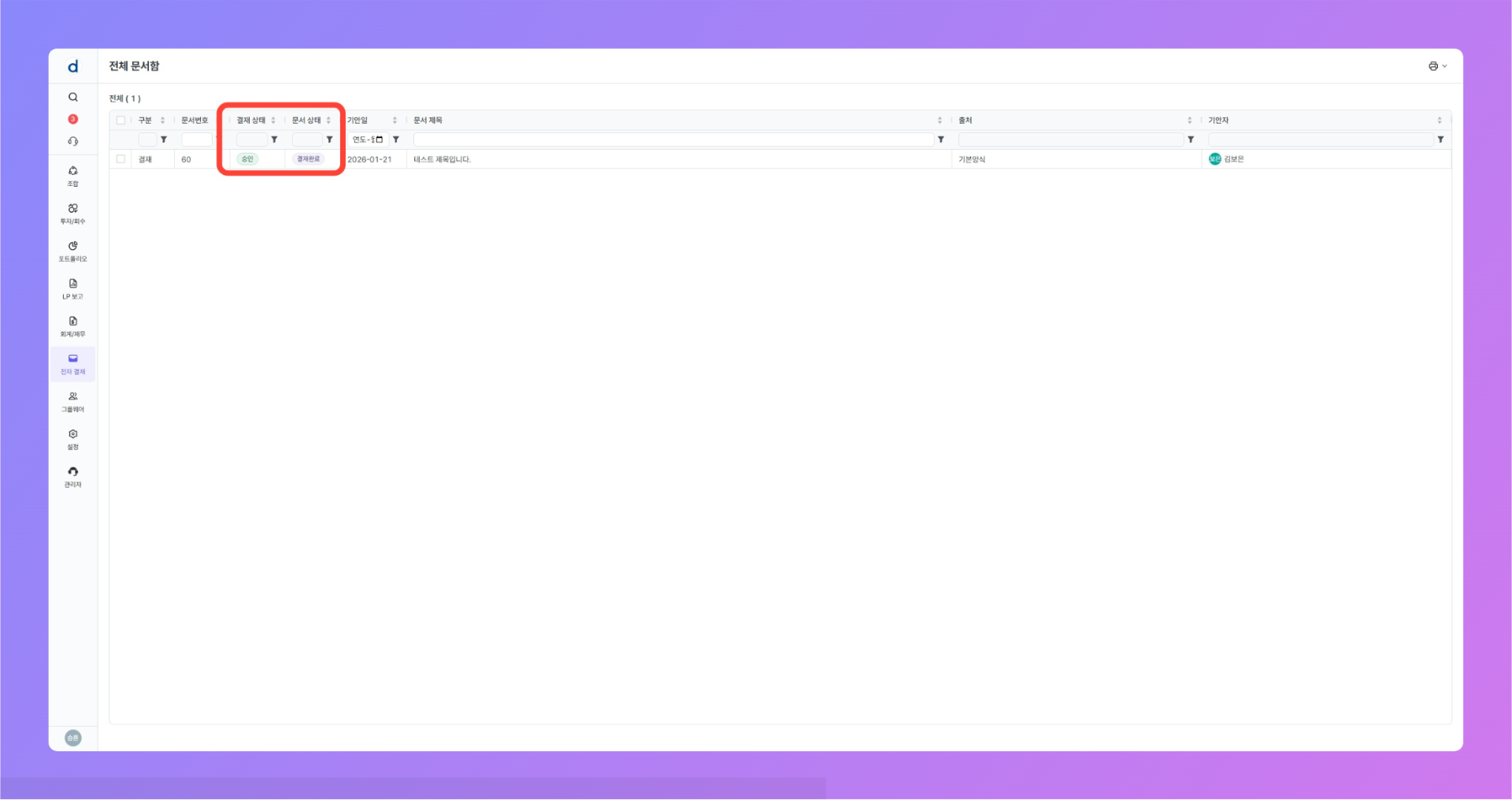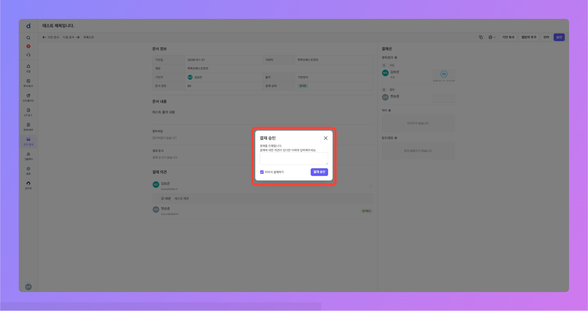 결재 상태및문서 상태가 변경됩니다.※참고 이미지