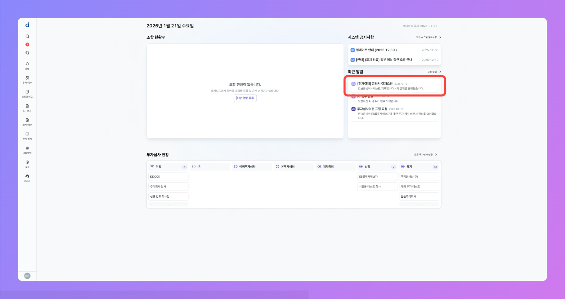 결재 문서의 확인은 알림 또는 이메일을 통해서도 확인이 가능합니다.